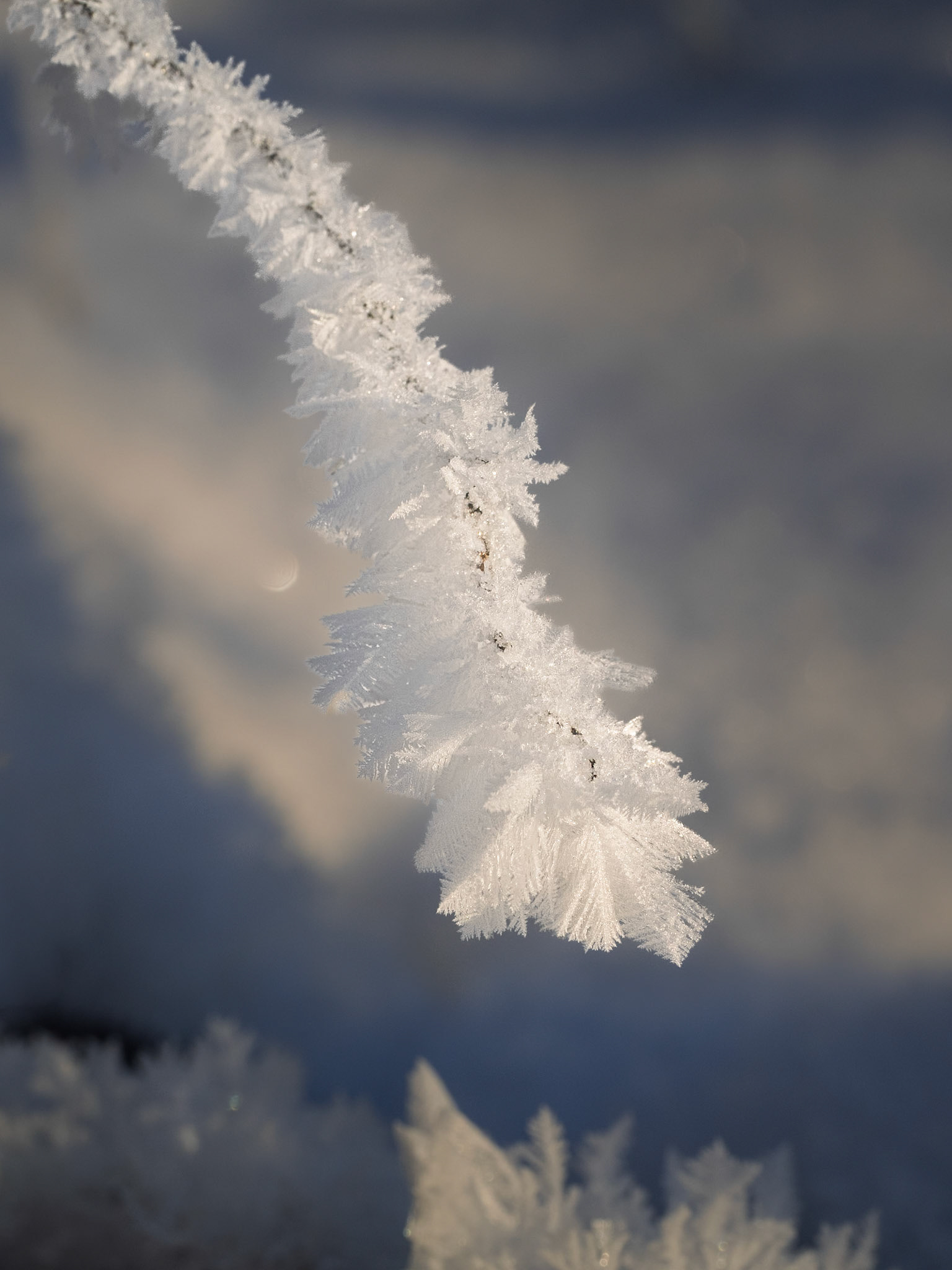 But then a stem with more ice-like crystals catches my eye. The lens flare adds to the photo I think