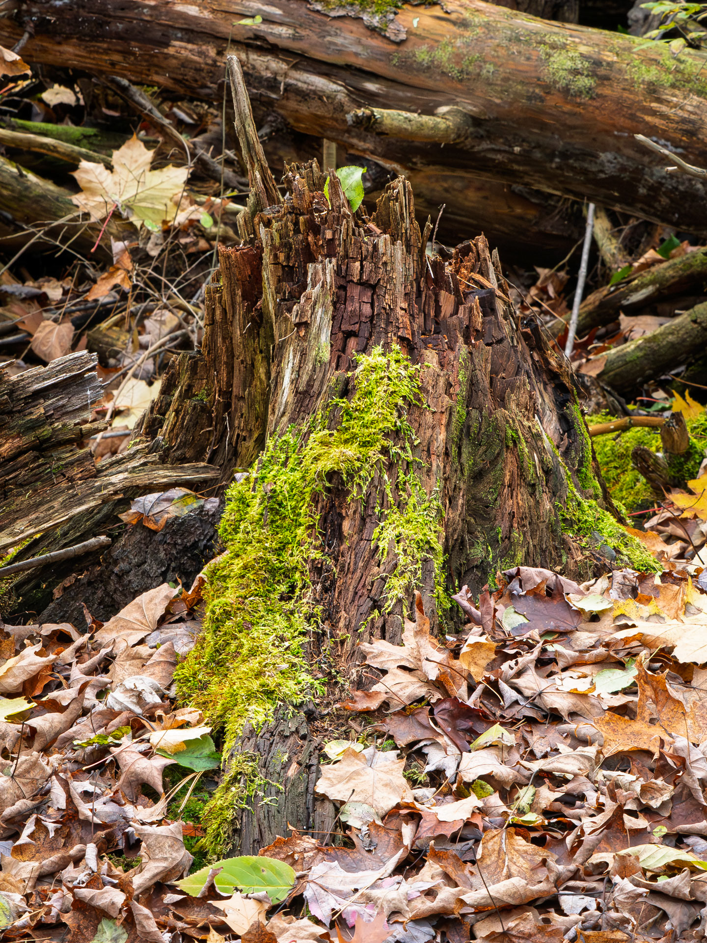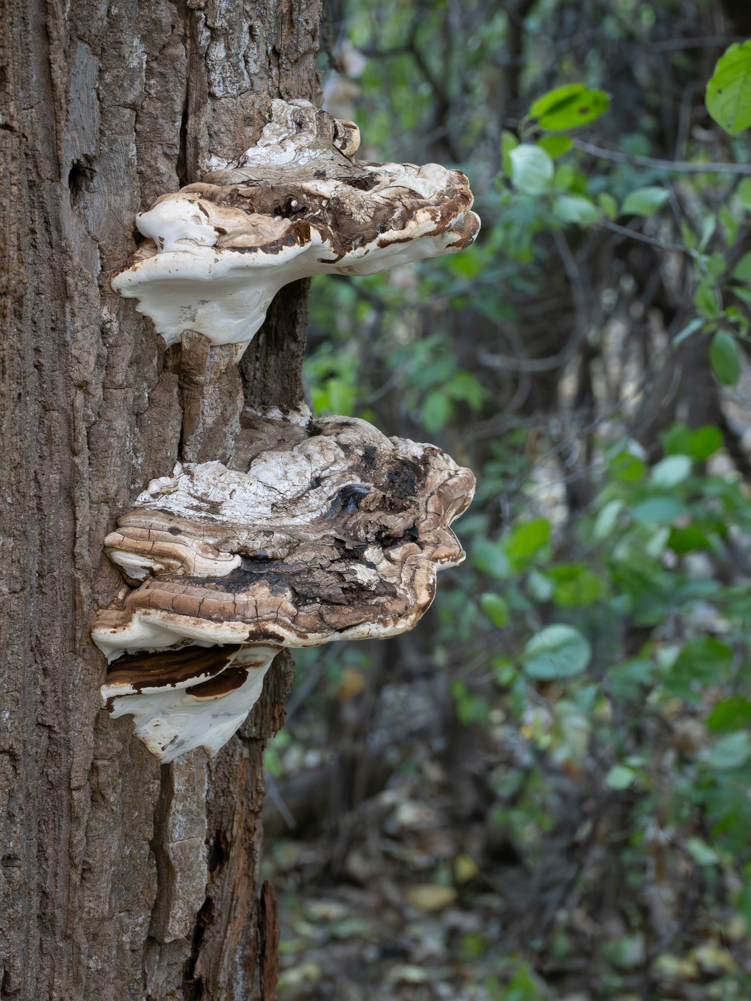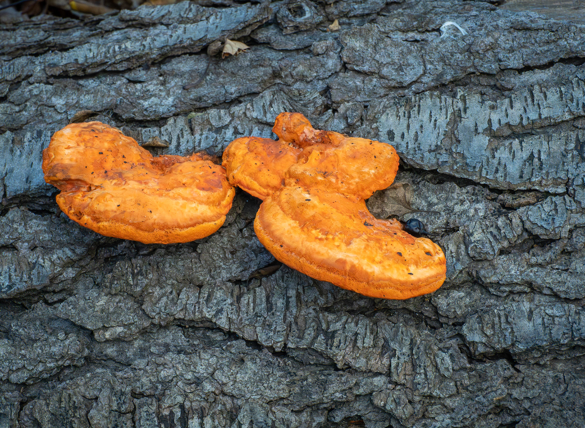 Despite the rains we've had, no mushrooms were to be seen. Some orange fungus caught my eye. The bracket fungus that had been destroyed last year, seem to have recovered