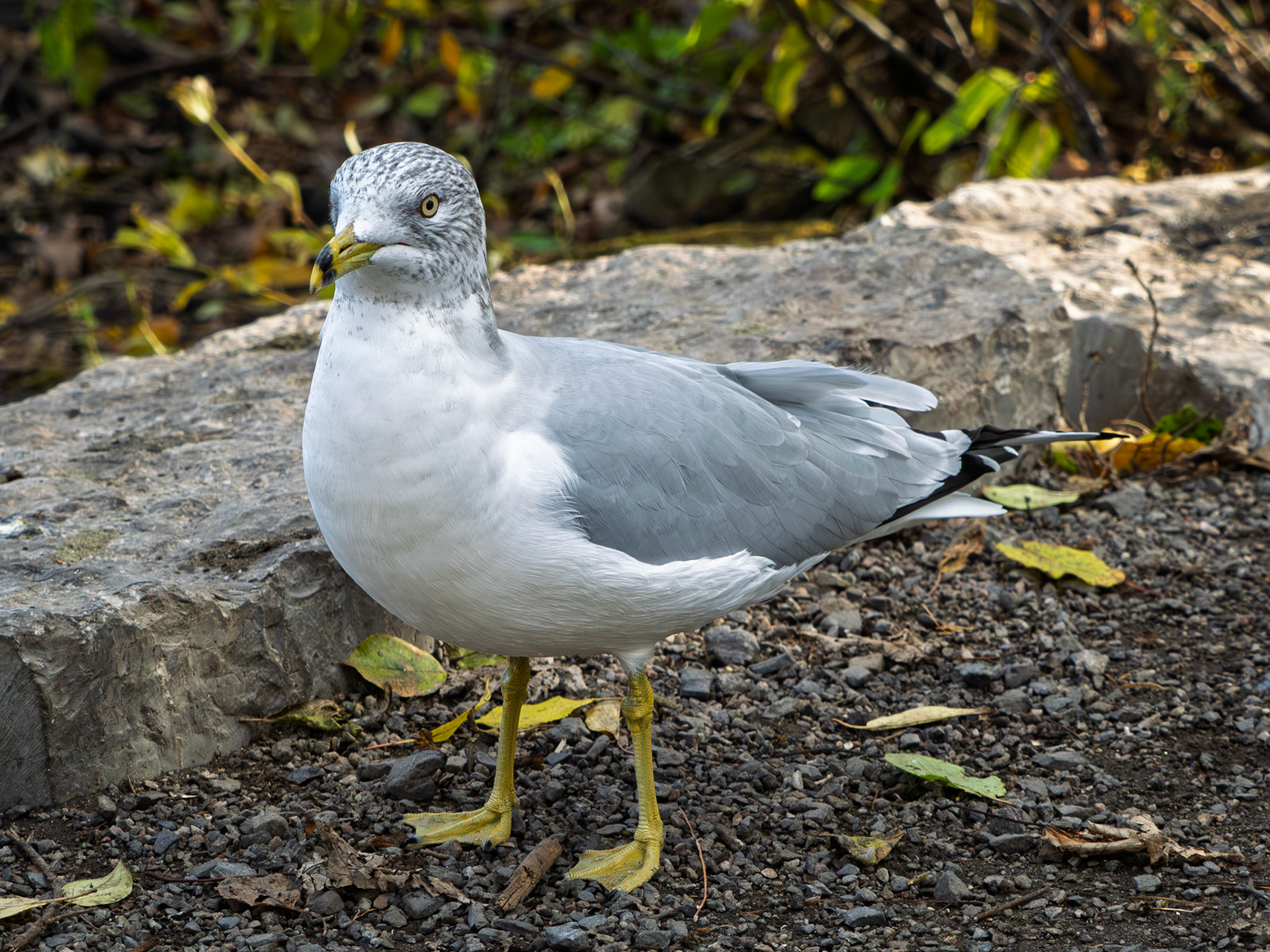 Some of the visitors were feeding the ducks at the usual "duck rocks" which was bringing in ring-billed gulls. I tried my best to video the gulls, but failed miserably. The lenses on both cameras were not wide-angle enough. I should have used my cell phone.