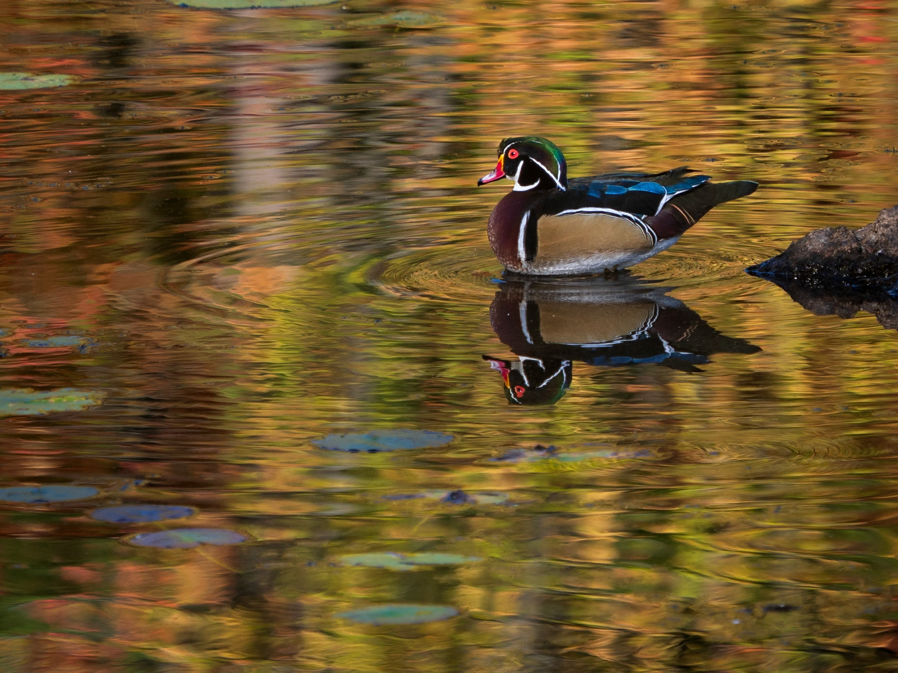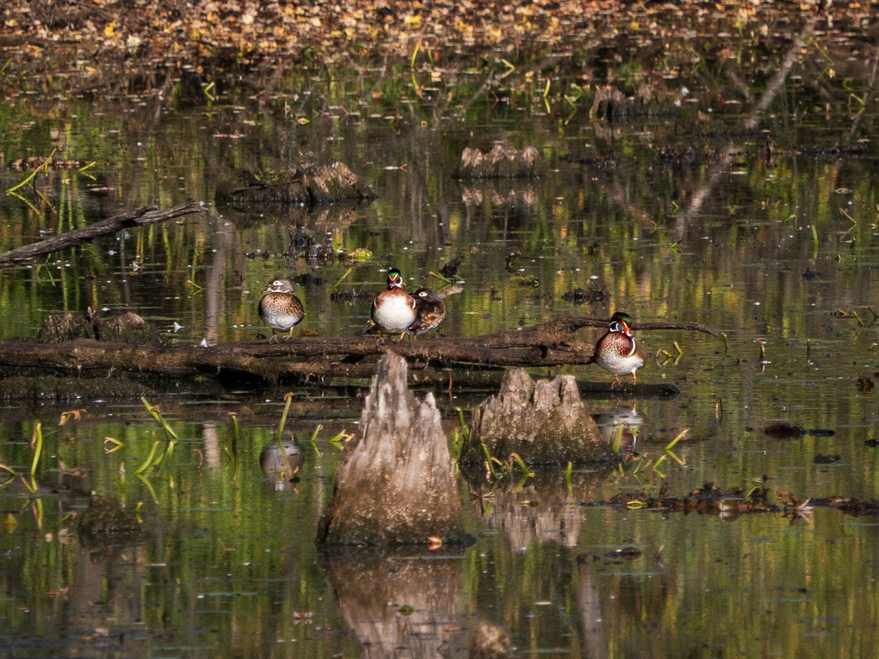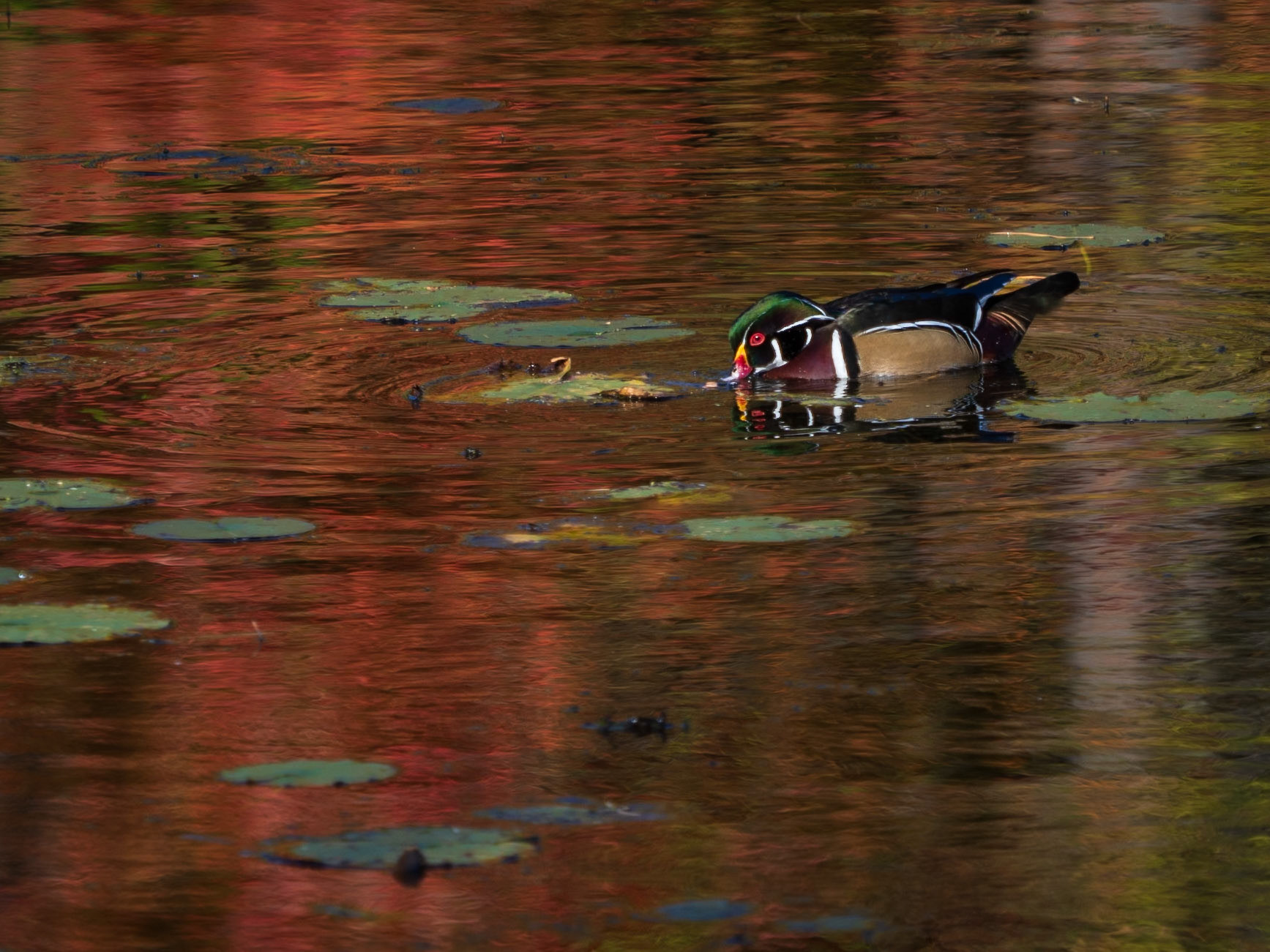 There were a good number of wood ducks still around, I suspect they'll start heading south soon. They look very nice swimming through the fall reflections.